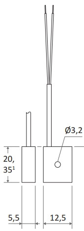 Поверхневий перетворювач температури з ізольованим чутливим елементом Pt100 класу допуску B (±0,3°С) для вимірювання температури поверхні твердих тіл, у тому числі в системах комерційного обліку тепла і газу. Для зручності кріплення датчик має отвір Ø3,2 мм.